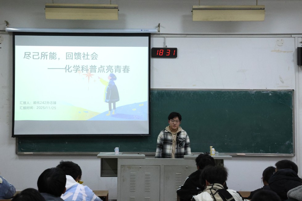 我院于11月25日在W1205教室成功舉辦了“石化青年說”系列講座第三講。本次講座以“盡己所能,回饋社會(huì)”為主題,由能化242班孫志臻與化工246班宋羽凡擔(dān)任主講。
