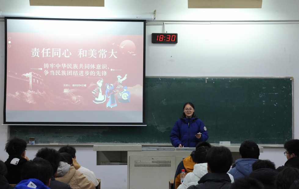 為了引導(dǎo)石化青年明確責(zé)任,并將個(gè)人成長(zhǎng)融入集體與學(xué)校發(fā)展,共同建設(shè)和美校園,12月16日晚,學(xué)生第二黨支部黨員能化234班王曦在W1203教室開(kāi)展了“青年講師團(tuán)”系列講座第五講——“責(zé)任同心,和美常大”。