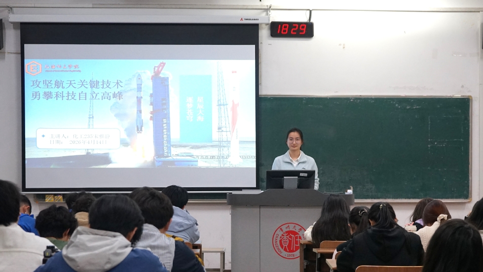 為深入學(xué)習(xí)航天精神,激勵(lì)青年學(xué)子以科技自立自強(qiáng)為己任,我院于4月14日在W1202教室開(kāi)展了以“航天強(qiáng)國(guó)建設(shè)”為主題的“青年講師團(tuán)”系列講座第三講,該講座由學(xué)生第一黨支部黨員化工235宋雅靜和化工236王思懿兩位同學(xué)主講。