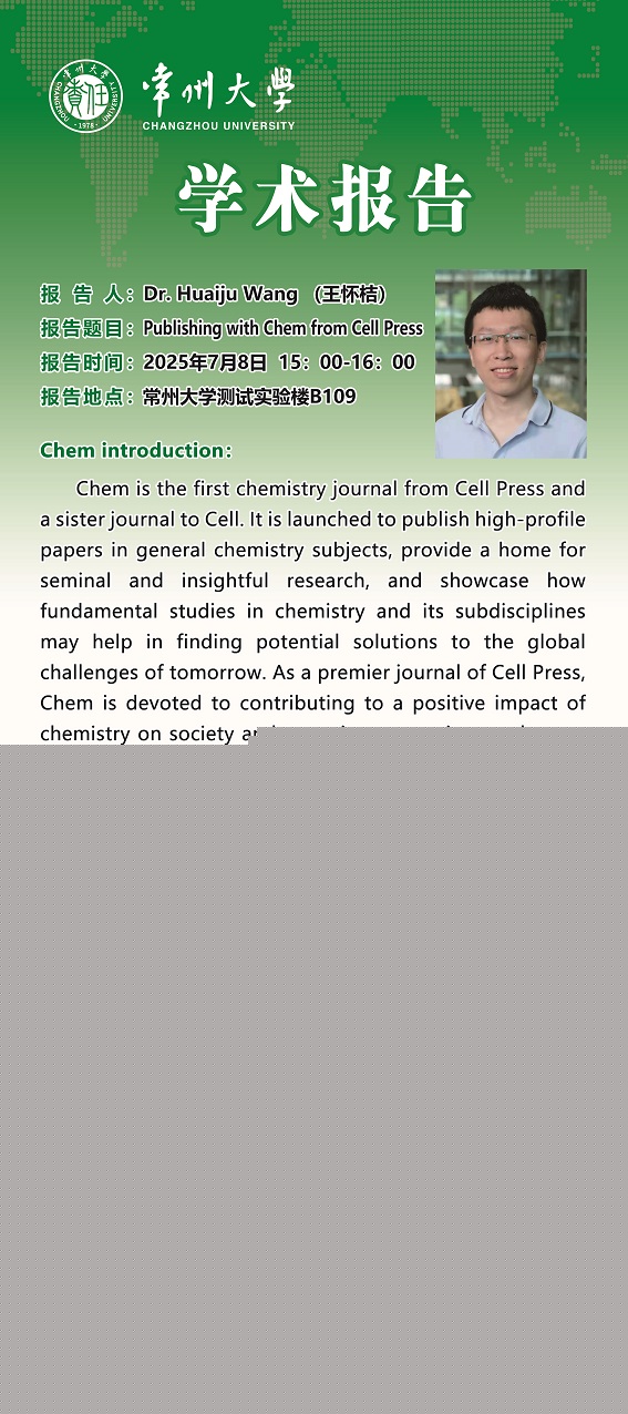 | 【學術(shù)報告】7月8日功能雜環(huán)研究院學術(shù)報告——王懷桔 chem雜志編輯 |